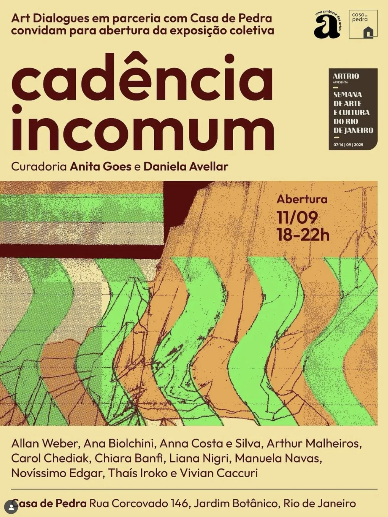 Exhibiting at ArtRio 2025 with WG Galeria, in section Brasil Contemporâneo, curated by Paula Borghi. See my work at stand BC10, Pavilhão MAR, Marina da Glória, Rio de Janeiro (Sept 10–14).